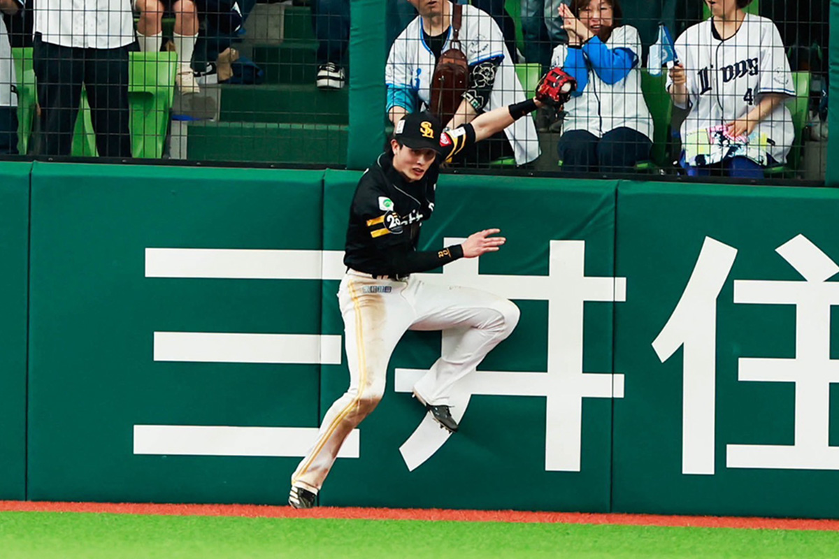 5連敗と苦しんでいたチームを救ったのは選手会長だった。20日にベルーナドームで行われた西武戦。周東佑京内野手は打っては2安打1打点。守備では9回、フェンスに当たりながらもキャッチするファインプレーを披露し、勝利に導いた。