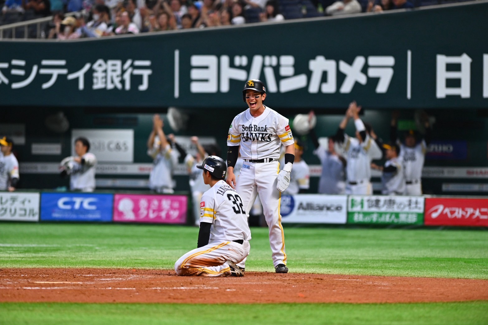 試合前、監督室に呼ばれて4番起用を通達された。「意識はなかったですけど、流れ的には自分の4つ後ろに山川がいる感じになりましたね」。2回無死、まずは背番号7が打席へ。右翼線への二塁打で出塁すると、柳町の中前打で先制した。「1打席目にいい形で回してくれたので、なんとか返そうと思っていました。晃さんが二塁からめちゃくちゃいいスタートを切ってくれたので、タイムリーになってよかったです」と声を弾ませる。