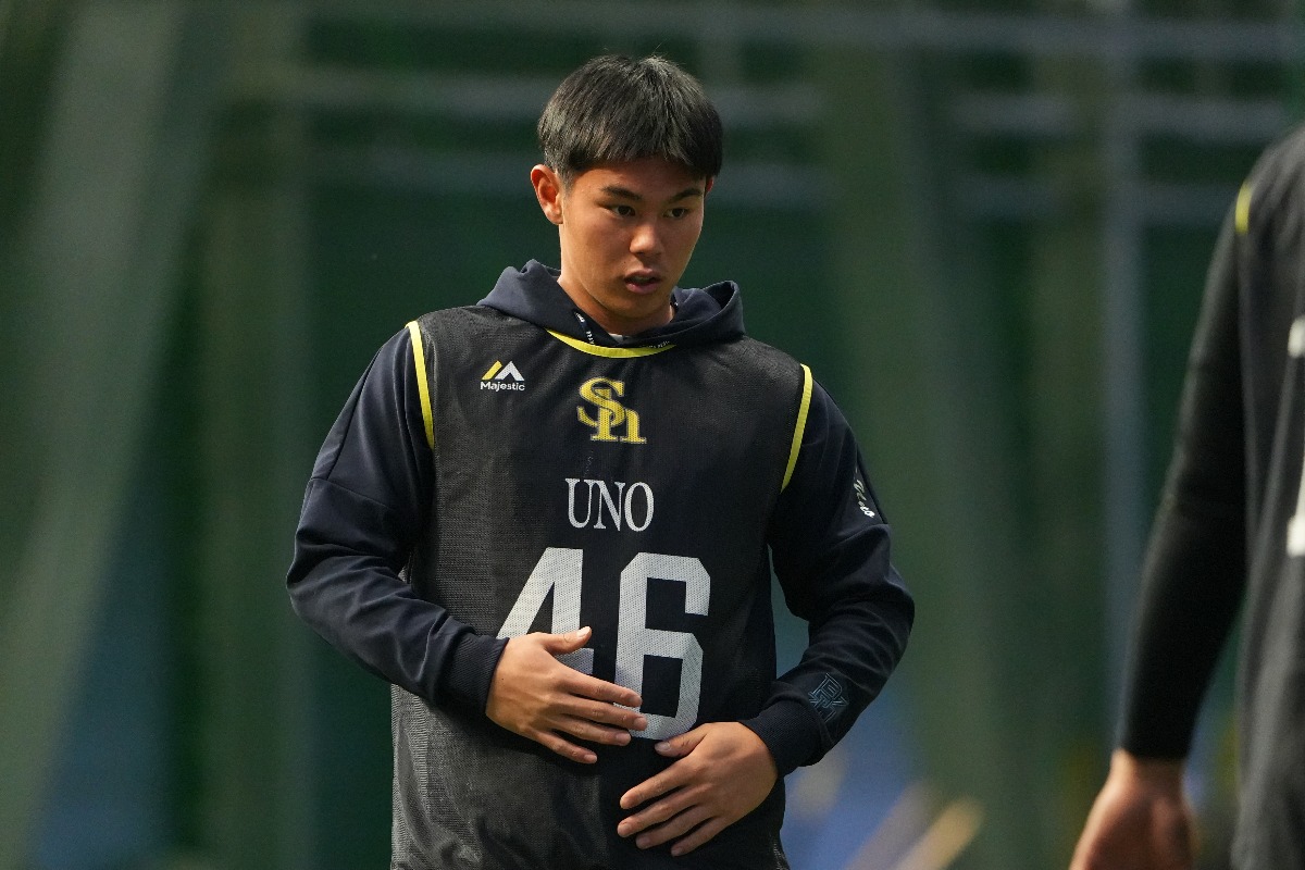 パ・リーグ3連覇、そして2年連続の日本一に挑む2026年のホークス。鷹フルでは、昨年撮りためた秘蔵写真コレクションで選手の1年を振り返ります。今回は宇野真仁朗内野手が登場。2軍では10試合に出場して打率.391をマークする非凡さを見せました。一方で、昨年7月には右肘のトミー・ジョン手術を受けるなど、試練のルーキーイヤーともなりました。そんな19歳の激動の1年目を振り返る30枚をご覧ください!