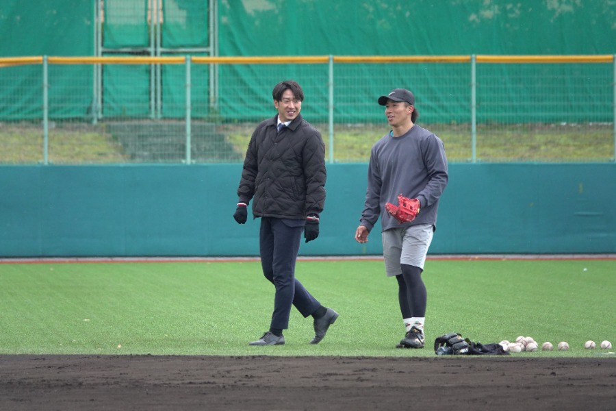 野村勇が笑った瞬間 視線の先に映る先輩…滋賀でまさかの“対面”「めっちゃ実家近いって」