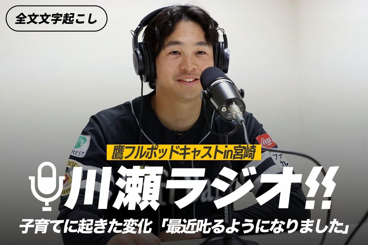 2026年からスタートした「鷹フルポッドキャスト」が宮崎に出張! 春季キャンプ中も選手の“声”をたっぷりと届けます。第2回となる収録は川瀬晃選手がゲストで登場してくれました。最近変化があったという川瀬流の子育てや、“幻”となった選手会長への本音、そして自主トレ中に見せてくれた「神対応」について――。普段は見られない素顔をお楽しみください!