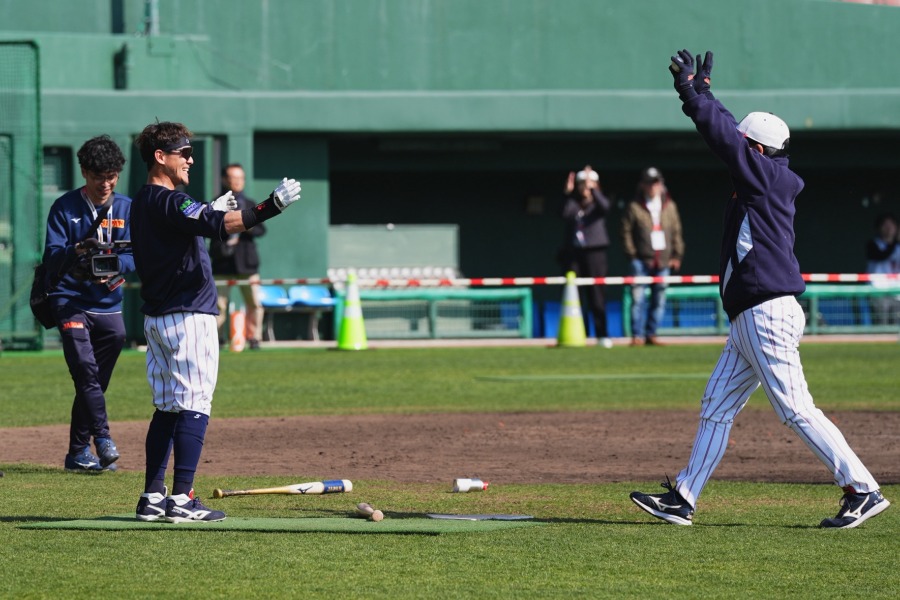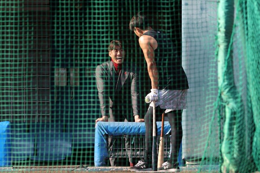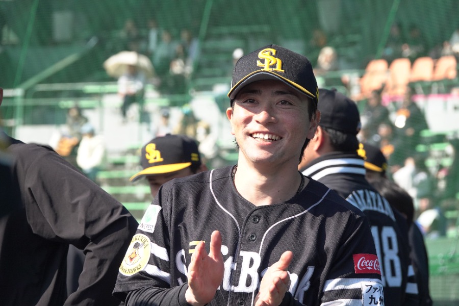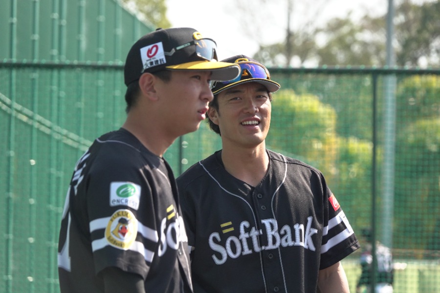 柳田悠岐、夕日に映える“肉体美” 2人の恩師に見せた最高の笑顔…宮崎3か所から写真100枚