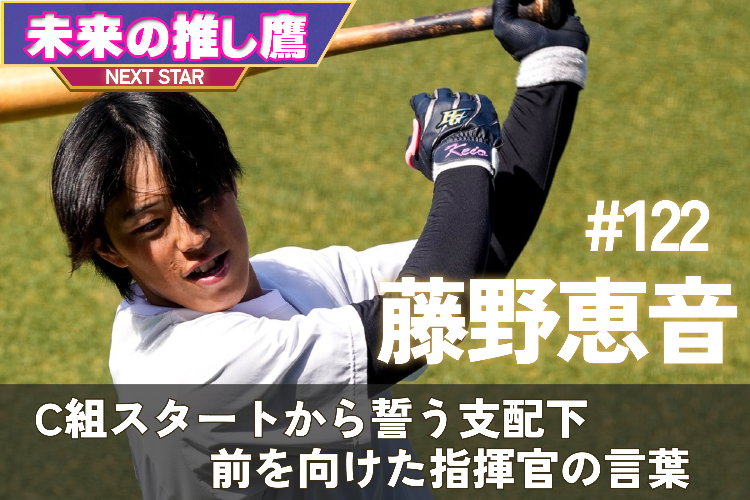 ホークスの将来を担う育成選手に焦点を当てた新コーナー「未来の推し鷹」。今回はファーム・リーグで3年ぶりの本塁打を放つなど、ここまで打率.300を記録している藤野恵音内野手が登場します。昨季は2軍で自己最多の71試合に出場するも、今年の春季キャンプはC組スタート。明かしたのは、同期と酌み交わした“ヤケ酒”でした。そして、気持ちを切り替えるきっかけとなった斉藤和巳2軍監督からの言葉――。22歳の感情に迫ります。