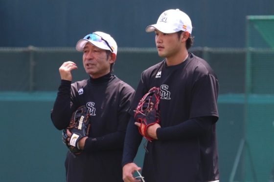 2軍の全日程が終わり、来季に向けて若鷹が練習に励んでいた4日のタマスタ筑後。室内練習場には普段とは違う光景が広がっていた。ノックで華麗なグラブさばきを見せていた今宮健太内野…